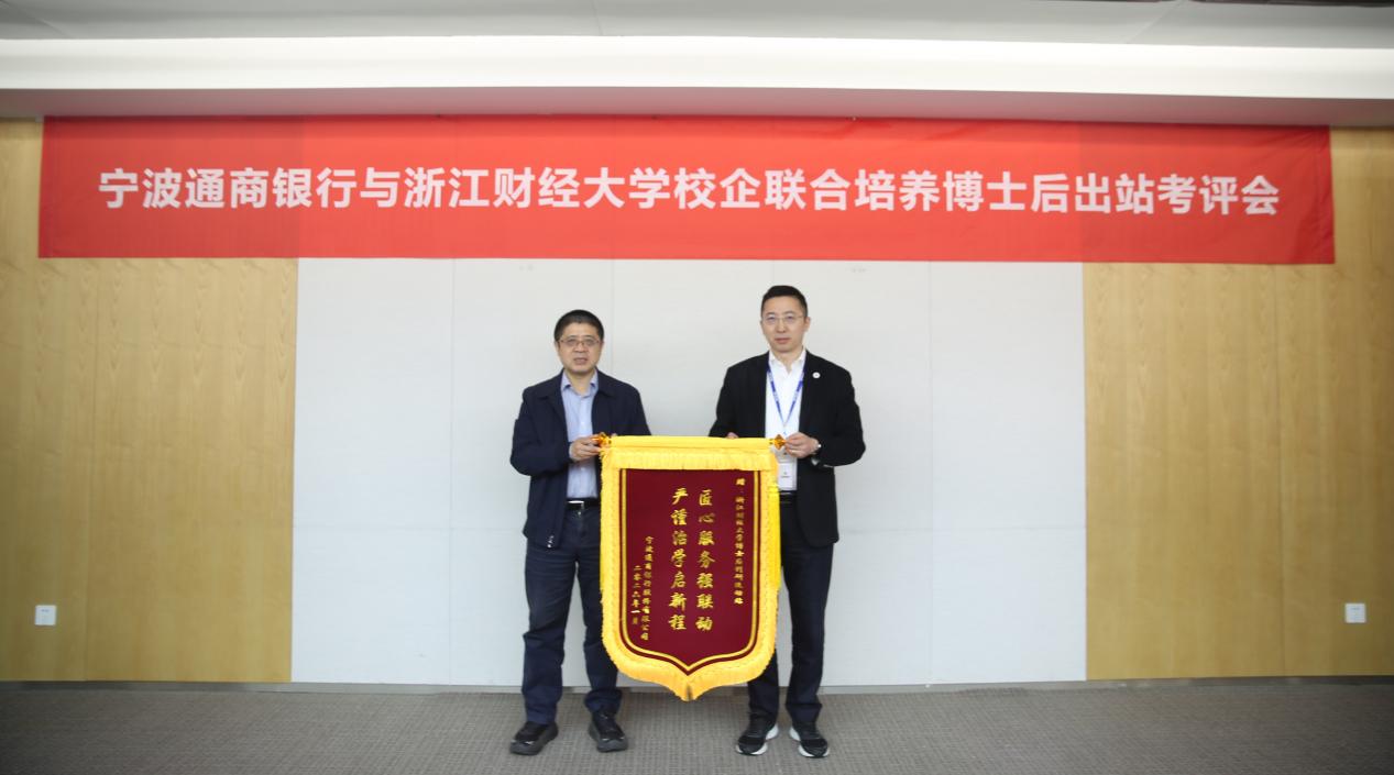 1月16日,学校与宁波通商银行联合培养博士后出站考评会举行。我校应用经济学博士后科研流动站与银行联合培养的潘陈新博士后以优秀等级顺利通过考评,宁波通商银行行长王勉代表企业向流动站赠送锦旗,致谢学校人才培养与科研支撑。宁波市鄞州区人社局党委委员崔莉、四川大学余乐安教授、我校金融学院陈荣达教授、林祺教授出席会议。