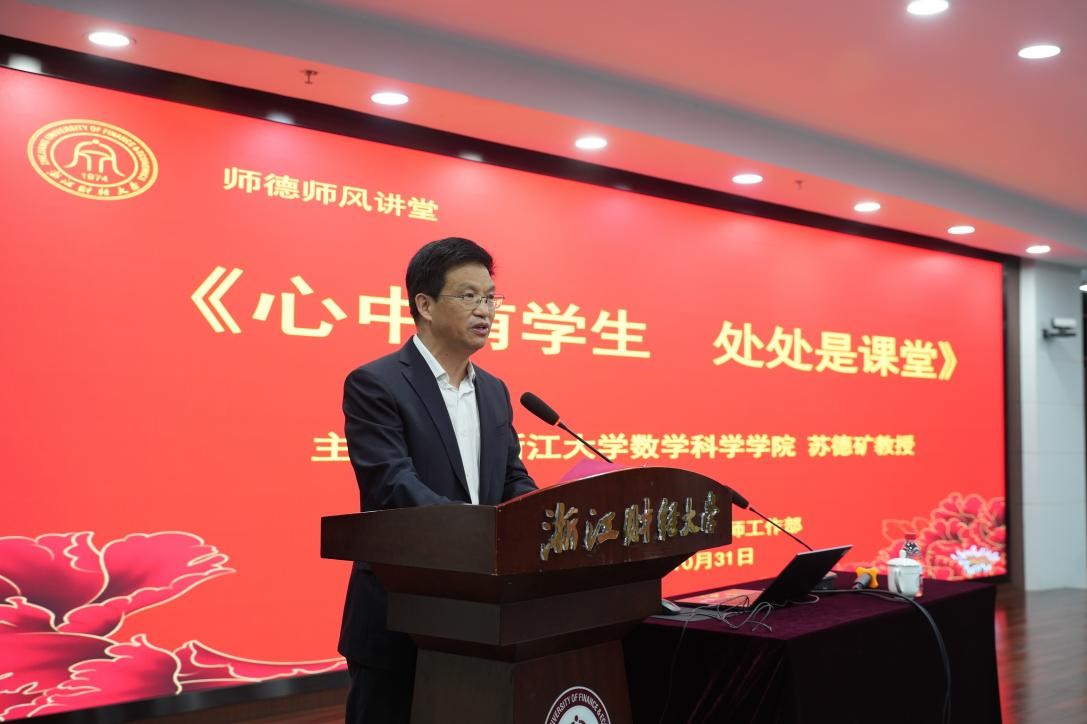 10月31日,教育部教育家精神宣讲团成员、全国优秀共产党员、全国“十大最美教师”、浙江大学苏德矿教授应邀来校作题为《心中有学生,处处是课堂》的师德专题报告,校党委委员、副校长董进才出席并主持讲座。人事处相关负责人及新进教职工参加讲座。